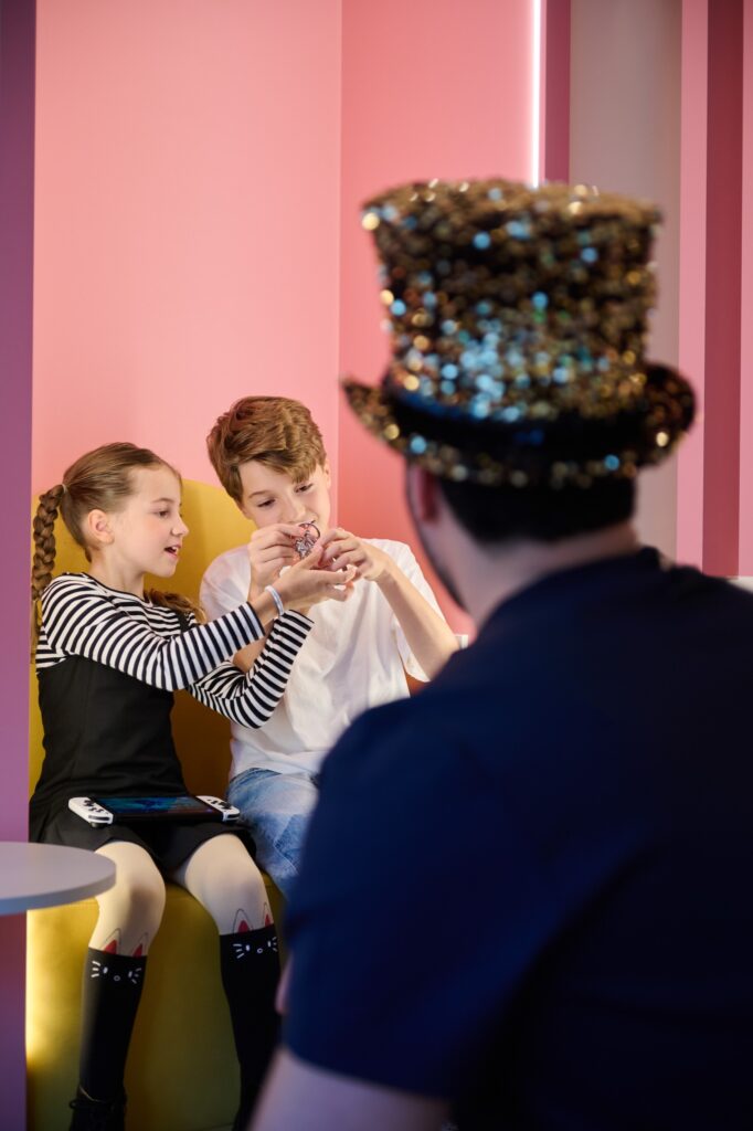 Doch das ist nicht alles: Therapeutisches Zaubern ist mehr als nur Unterhaltung. Es ist der Schlüssel, um Vertrauen aufzubauen und die Angst vor dem Unbekannten zu nehmen. Die Magie hilft Kindern, sich zu wohlzufühlen, ihre Umgebung neugierig zu erkunden und den Zahnarztstuhl ganz ohne Bedenken zu erobern. So machen sie eine positive Erfahrung und lernen, dass der Besuch beim Kinderzahnarzt Spaß machen kann.